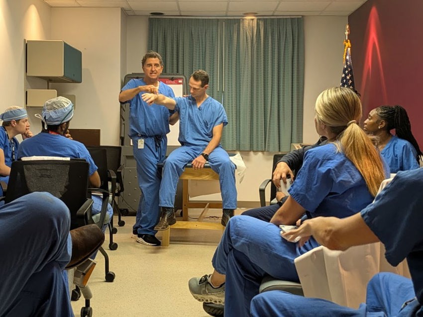 From September 24-26, 2025, AANA Second Vice President Joseph Tauro, M.D., FAANA, served as an AANA Visiting Professor at Womack Army Medical Center, hosted by Christopher Belyea, M.D., M.B.A., FAAOS and the Womack Cape Fear Orthopaedic Surgery Residency Program. The program focused on arthroscopic and minimally invasive techniques through direct instruction, case-based discussion and resident engagement.